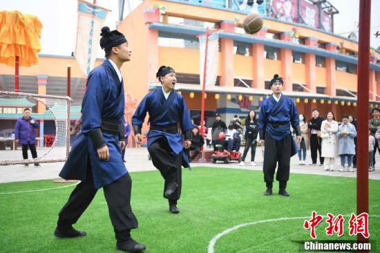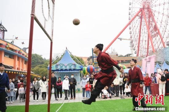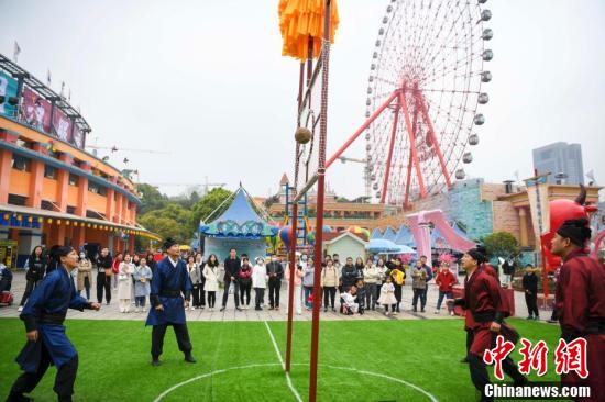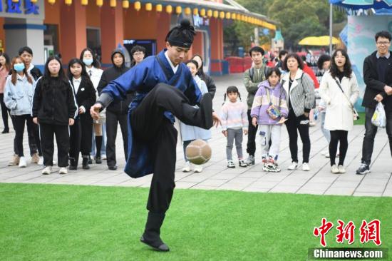 4月3日,湖南省长沙市世界之窗公园举行蹴鞠活动,以此方式还原古代清明节的传统习俗。