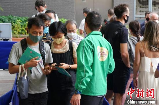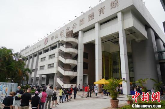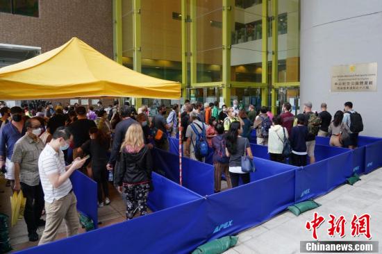 4月5日上午,香港市民在设于中山纪念公园体育馆的社区疫苗接种中心门前排起长龙,准备接种复必泰疫苗。3月24日,因复必泰疫苗包装出现瑕疵问题而被暂停接种,时隔12天后,复必泰疫苗当天恢复接种。