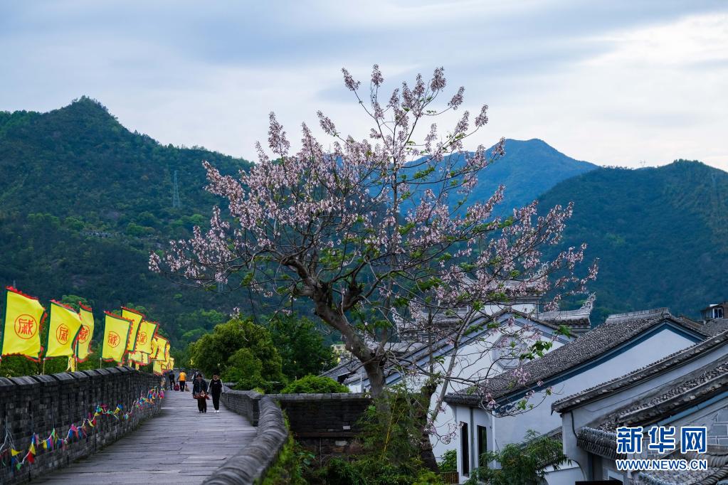 4月7日,游客在临海的台州府城文化旅游区游览江南长城。