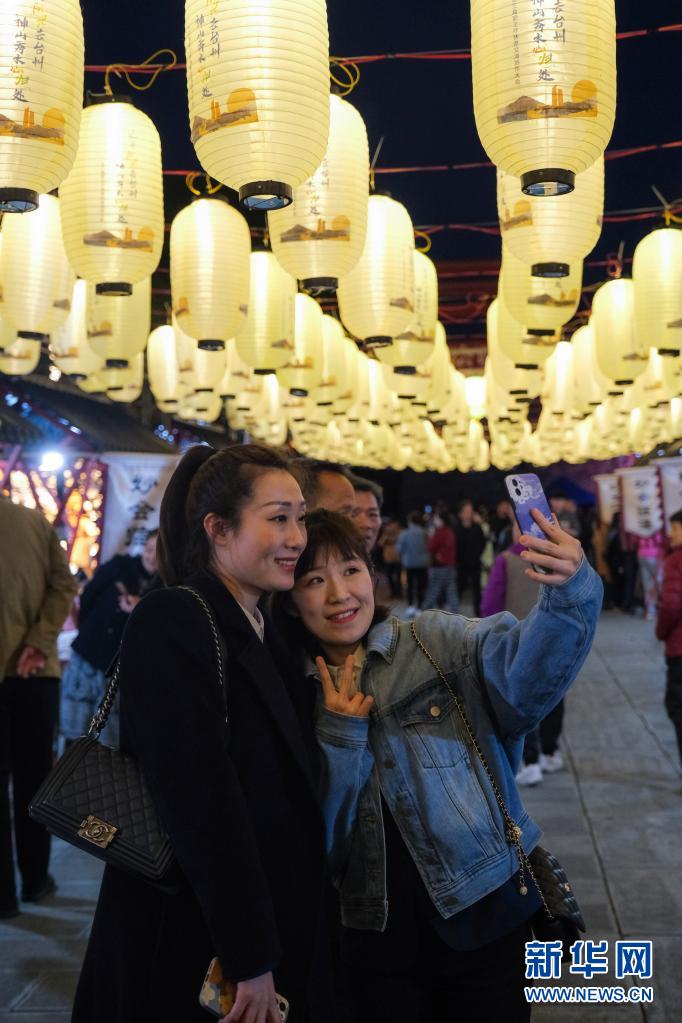 4月7日,游客在临海的台州府城文化旅游区内体验紫阳街的民俗文化夜游项目。