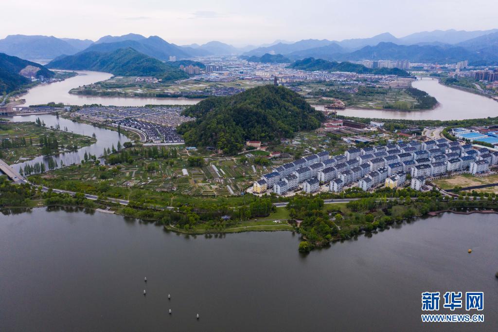 空中俯瞰台州临海的灵湖景区(4月7日摄,无人机照片)。