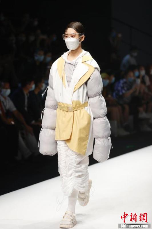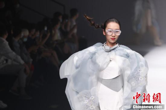5月19日,北京,以“纯·渡”为主题的江汉大学毕业生作品亮相2021中国国际大学生时装周。 中新社记者 蒋启明 摄