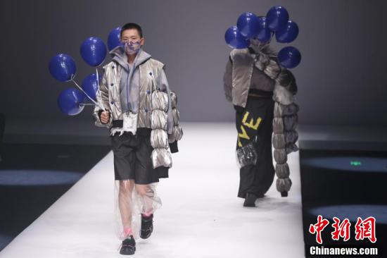 5月19日,武汉纺织大学服装学院优秀毕业设计作品发布会在北京中国国际大学生时装周亮相。 中新社记者 盛佳鹏 摄