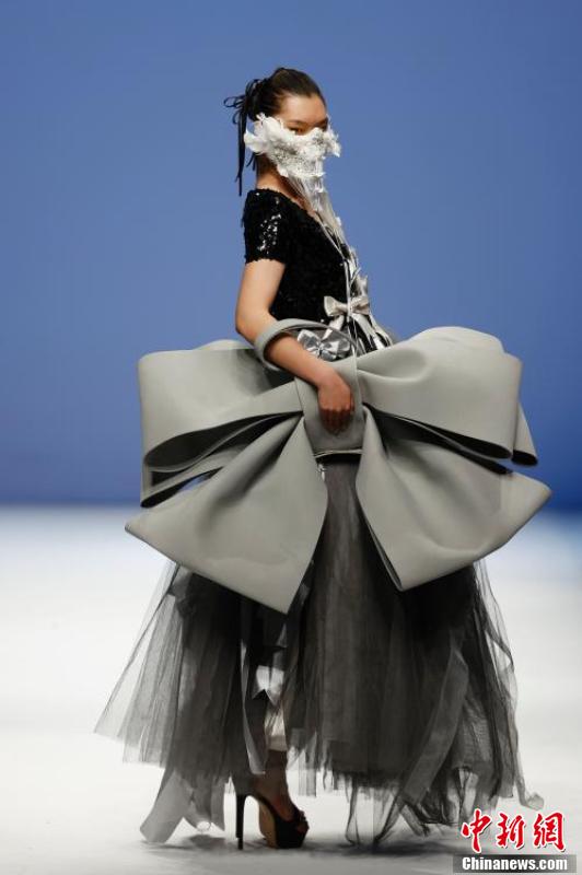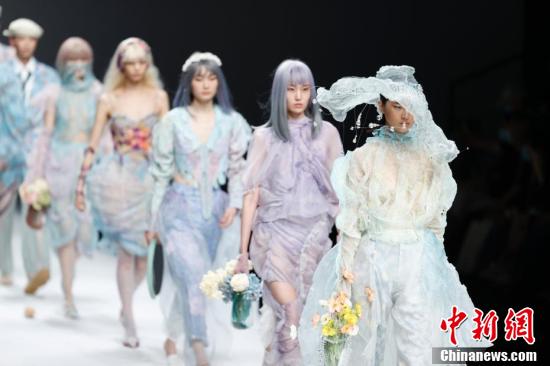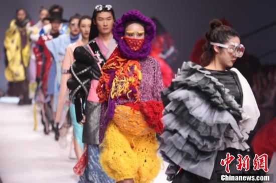 5月19日,武汉纺织大学服装学院优秀毕业设计作品发布会在北京中国国际大学生时装周亮相。 中新社记者 蒋启明 摄