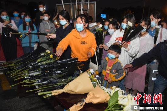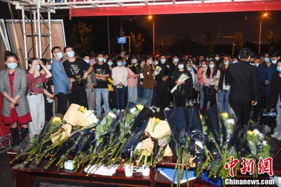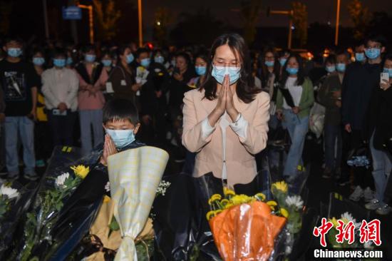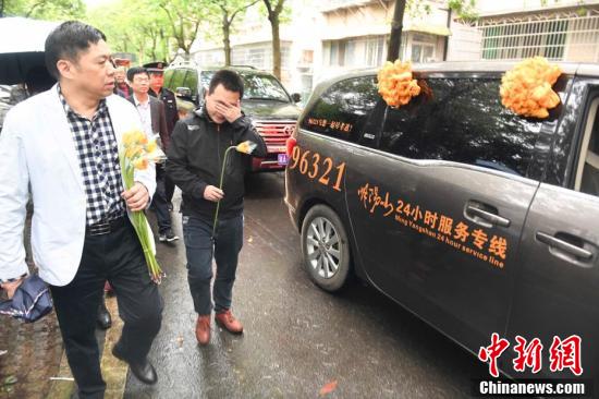 图为民众在殡仪馆前等待献花。 中新社记者 杨华峰 摄