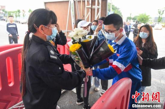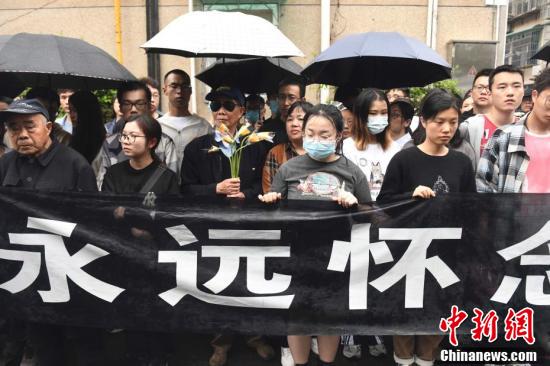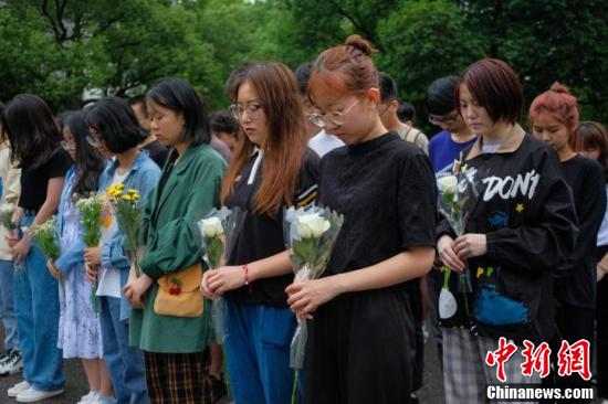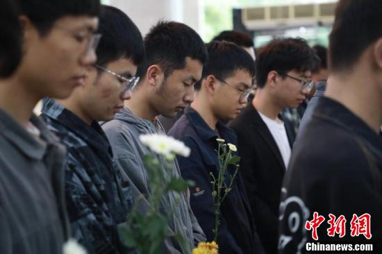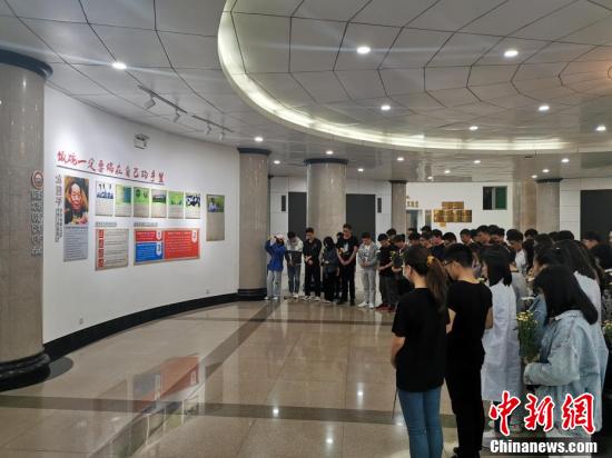 图为中学生来到殡仪馆献花。 中新社记者 杨华峰 摄