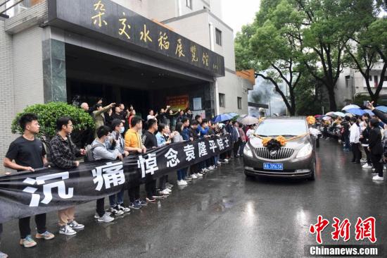 图为灵车驶出湖南杂交水稻研究中心。 中新社记者 杨华峰 摄