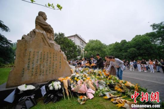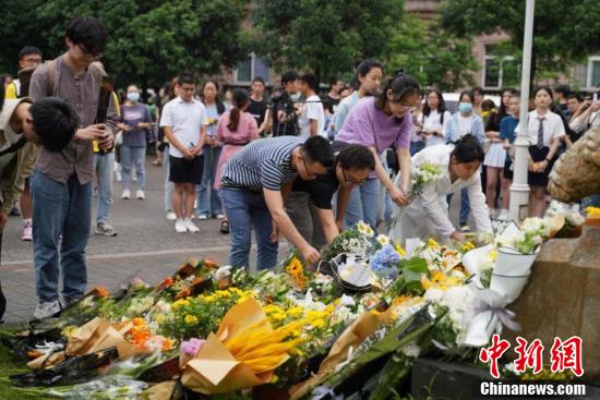 “杂交水稻之父”、中国工程院院士、“共和国勋章”获得者袁隆平,于5月22日13时07分在长沙逝世,享年91岁。下午,其母校重庆西南大学的师生自发来到学校袁隆平雕像前,献上鲜花,表达哀思。 何蓬磊 摄