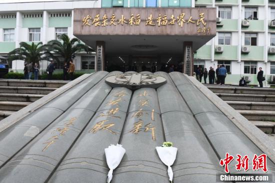 图为市民在湖南杂交水稻研究中心摆放的鲜花。 中新社记者 杨华峰 摄