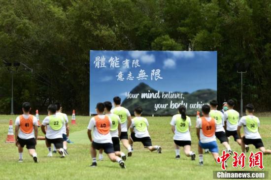 5月30日,香港警队在黄竹坑警察学院举办“警察招募?体验日”活动,以“守护我城·搜寻传承”的信念,招募见习督察及警员。参加人士透过一系列活动体验遴选程序、警察学院的训练和了解警队不同部门的工作。图为学员准备体能测试。 中新社记者 李志华 摄