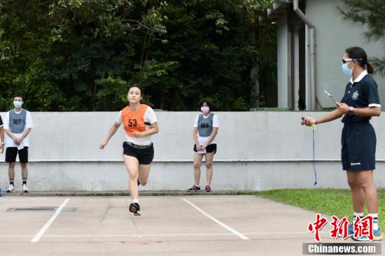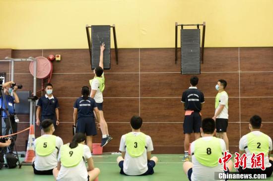 5月30日,香港警队在黄竹坑警察学院举办“警察招募?体验日”活动,以“守护我城·搜寻传承”的信念,招募见习督察及警员。参加人士透过一系列活动体验遴选程序、警察学院的训练和了解警队不同部门的工作。图为学员进行入职体能测试。 中新社记者 李志华 摄