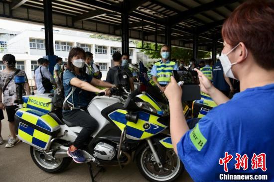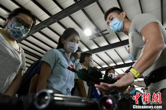 5月30日,香港警队在黄竹坑警察学院举办“警察招募?体验日”活动,以“守护我城·搜寻传承”的信念,招募见习督察及警员。参加人士透过一系列活动体验遴选程序、警察学院的训练和了解警队不同部门的工作。图为市民参与警队展览体验活动。中新社记者 李志华 摄