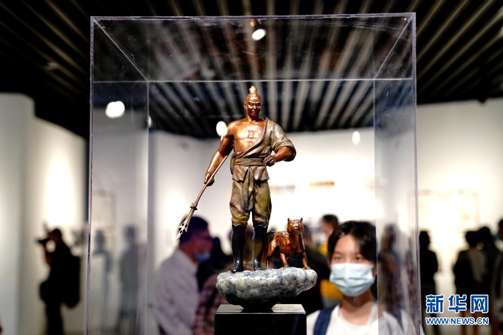 6月1日,参观者在第二届全国动漫美术作品展上观看展出作品。