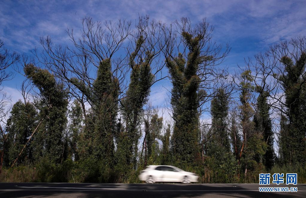6月1日,在澳大利亚悉尼以西的蓝山地区,公路旁遭受2020年夏天山火灾害的林地部分植物已经恢复繁茂。
