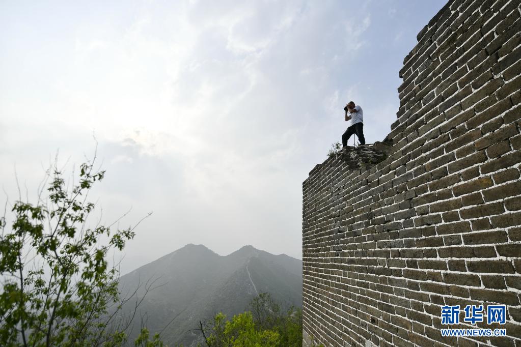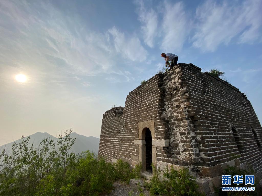 6月2日,侯云成在一座长城敌楼上瞭望。