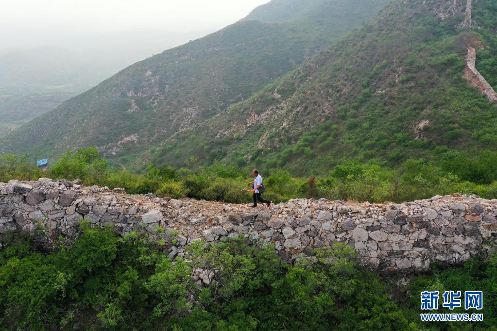6月2日,侯云成行走在巡视长城的路上(无人机照片)。