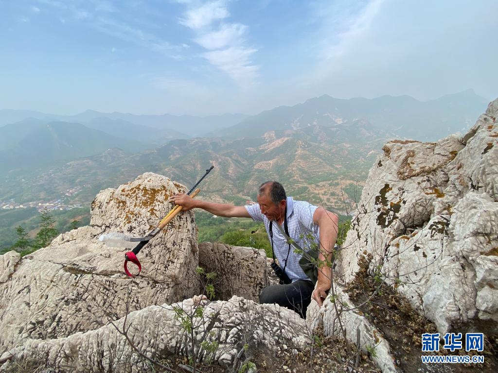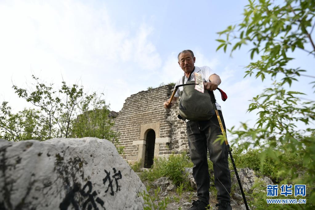 6月2日,侯云成在巡视长城途中清理垃圾。