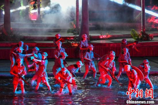 2019年10月10日,大型实景影画《红色娘子军》在海南省三亚市上演。 中新社记者 骆云飞 摄