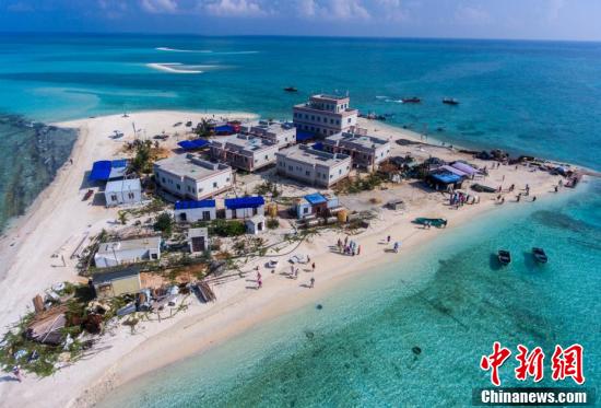 面积仅有0.01平方千米的海南省三沙市银屿世代居住着三沙渔民。2017年9月6日,在三沙市政府的帮助下,总建筑面积645平方米的渔民定居点建成,让岛上的渔民们告别昔日的木板房,住进“小洋楼”。图为2019年5月22日,银屿社区。(无人机照片) 中新社记者 骆云飞 摄