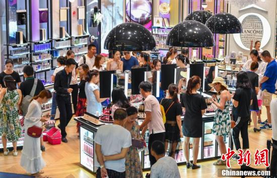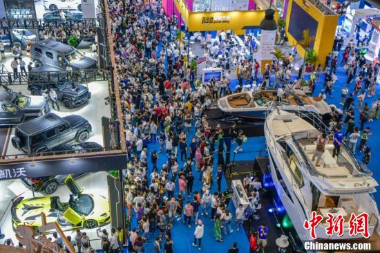2021年5月,在《海南自由贸易港建设总体方案》发布临近一周年之际,中国国际消费品博览会在海口举办。据统计,首届消博会共计来自70个国家和地区的1505家企业、2628个消费精品品牌参展,各类采购商和专业观众数量超过3万人,进场观众超过24万人次。展会让全球企业看到自贸港机遇,加速抢滩海南市场成为共识。 中新社记者 骆云飞 摄
