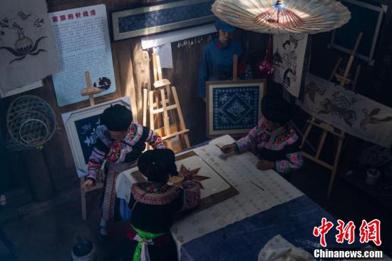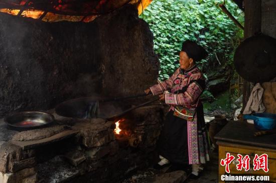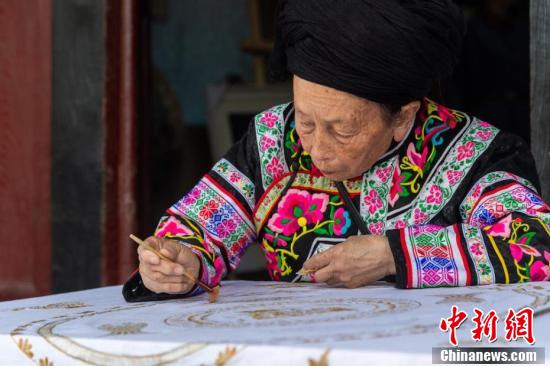 苗族画娘正在用铁质的蜡刀描图。魏廷华 摄