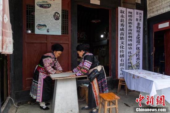 川南苗族蜡染独具特色,在四川泸州叙永、古蔺的苗族地区,蜡染工艺独特,其中以叙永的枧槽、两河等地蜡染裙尤为突出。其主要特点是图案精美,线条流畅,大量采用花蝶等动植物形象。所呈现的图案或重写实,或喜寓意,既夸张又富于人情味。色彩多以蓝白为主,少有红、绿搭配,清新如淡云蓝空的互托,明快如高山流水的旋律,精美绝伦,展现出蜡染的独特魅力。魏廷华 摄