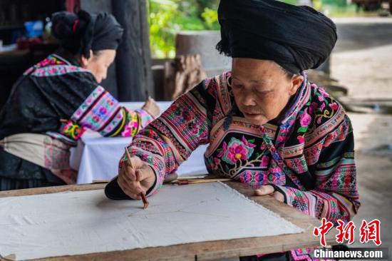 画蜡是苗族蜡染工艺的最关键环节。魏廷华 摄