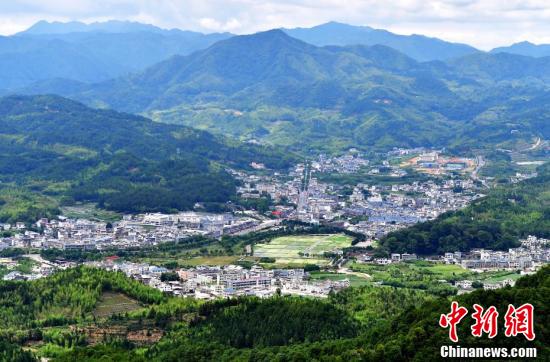 古田,福建省龙岩市上杭县境内的一个客家小镇。1929年12月,中国共产党红军第四军第九次代表大会在这里召开,史称“古田会议”。此次会议确立了“思想建党、政治建军”的原则。近年来,古田持续加大对古田会议会址等革命旧址群的保护与利用,传承红色基因、坚持绿色发展,推动乡村振兴。图为2021年6月7日拍摄的福建省上杭县古田镇。 中新社记者 张斌 摄