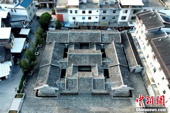 2018年4月拍摄的红四军政治部旧址。古田会议会址群位于福建省上杭县古田镇,包括古田会议会址、中共红四军前委机关暨红四军政治部旧址、红四军司令部旧址、毛泽东《星星之火 可以燎原》写作地旧址等革命旧址及古田会议纪念馆。(无人机照片) 中新社记者 王东明 摄