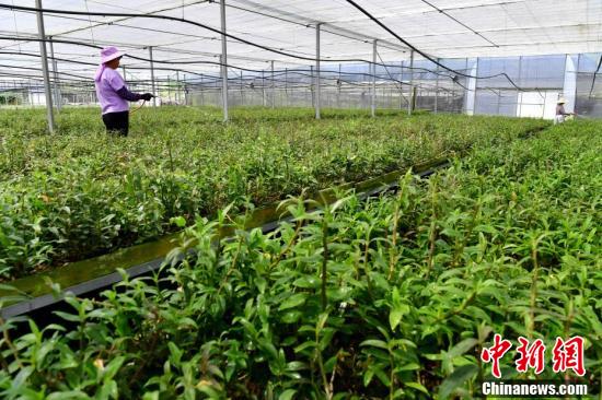 2021年6月7日,工人在古田镇新生村铁皮石斛项目示范基地管护铁皮石斛。 中新社记者 张斌 摄