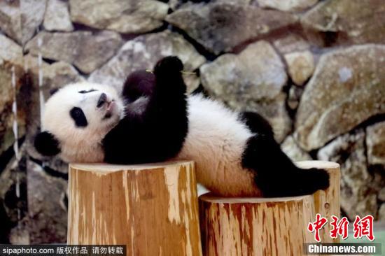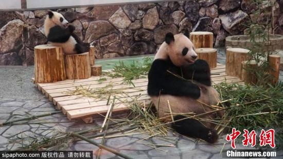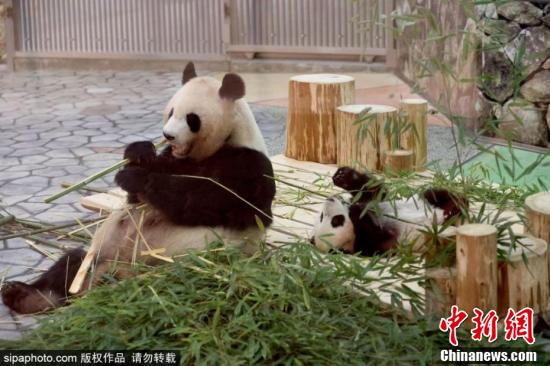 6月12日消息,日本和歌山县,旅日大熊猫“良浜”与幼崽“枫浜”在日本和歌山白浜野生动物世界内玩耍,虎头虎脑模样可爱。图片来源:Sipaphoto 版权作品 请勿转载