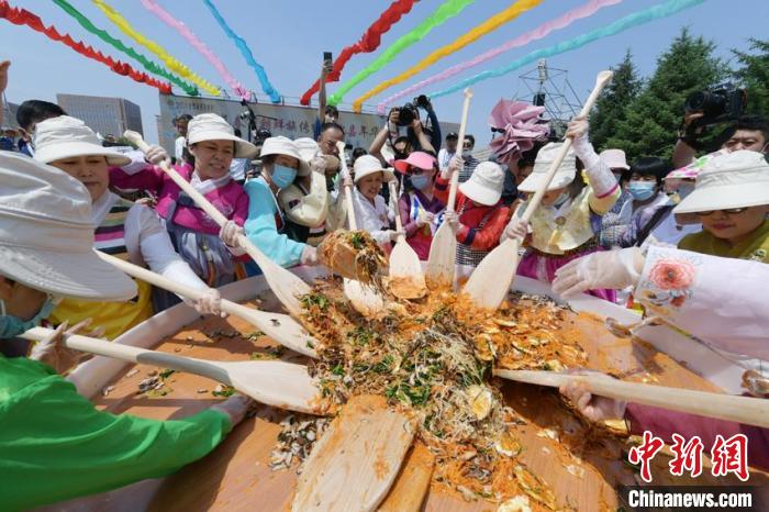 朝鲜族妇女演示朝鲜族拌饭制作过程。张瑶 摄