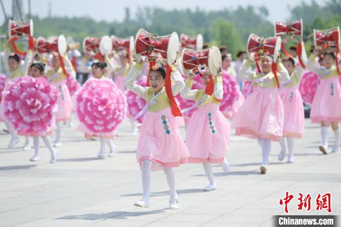 朝鲜族儿童为市民表演朝鲜族舞蹈。张瑶 摄