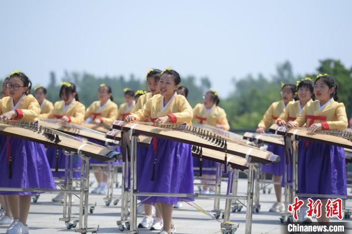 朝鲜族儿童为市民演奏朝鲜族乐器。 张瑶 摄