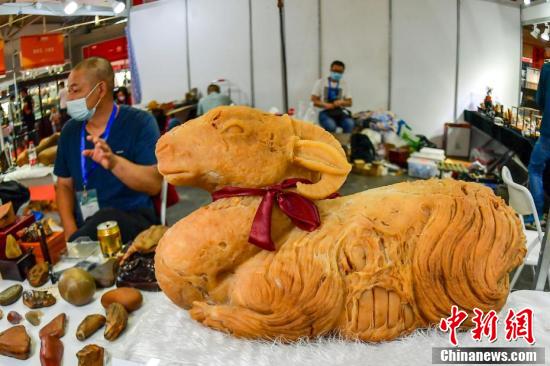 6月16日,第十三届新疆观赏石、和田玉精品博览会(石博会)在位于新疆乌鲁木齐市红光山的新疆国际会展中心开幕。图为参展奇石“烤全羊”亮相石博会。 中新社记者 刘新 摄