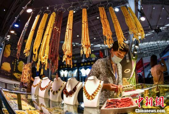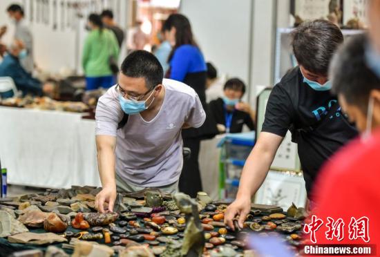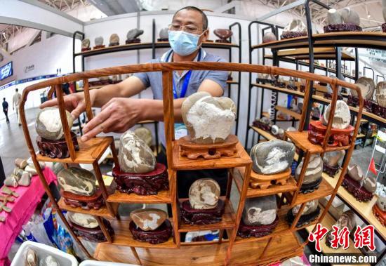 6月16日,第十三届新疆观赏石、和田玉精品博览会(石博会)在位于新疆乌鲁木齐市红光山的新疆国际会展中心开幕,吸引众多石友前来寻宝。 中新社记者 刘新 摄