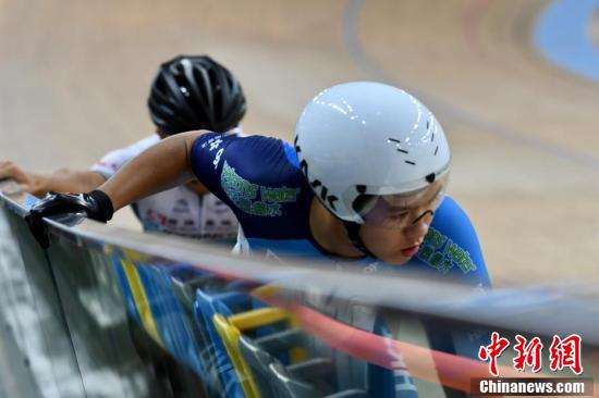 为备战奥运,6月17日下午香港体育学院与中国香港单车总会安排香港场地自行车运动员争先模拟赛。图为运动员李慧诗。 中新社记者 李志华 摄
