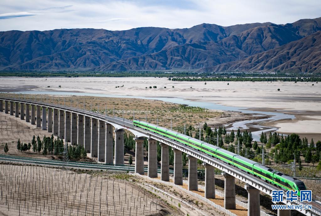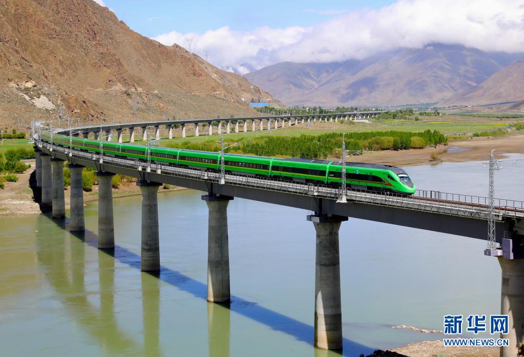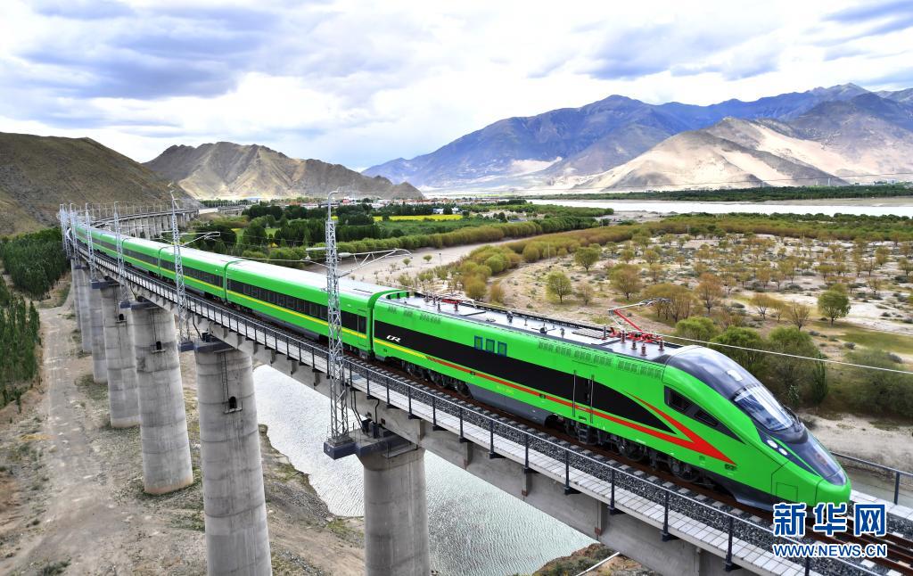 试运行的复兴号列车行驶在西藏山南市境内(6月16日摄)。