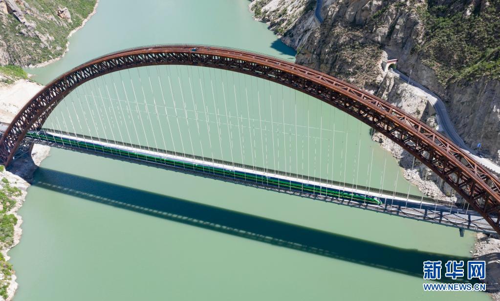 试运行的复兴号列车行驶在藏木特大桥上(6月17日摄)。