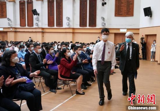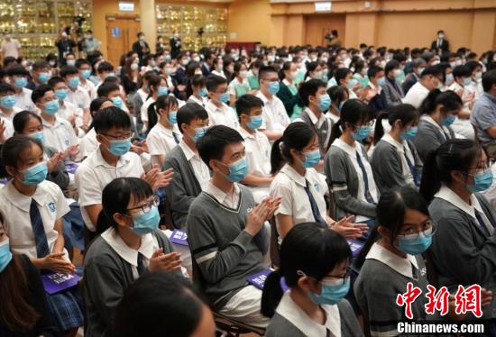 6月25日上午,中国工程院院士、神舟飞船首任总设计师戚发轫走进香港百年名校皇仁书院,向香港中学生代表畅谈中国航天与航天精神。图为中学生鼓掌。 中新社记者 张炜 摄
