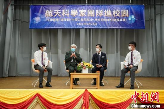 6月25日上午,中国工程院院士、神舟飞船首任总设计师戚发轫走进香港百年名校皇仁书院,向香港中学生代表畅谈中国航天与航天精神。 中新社记者 张炜 摄
