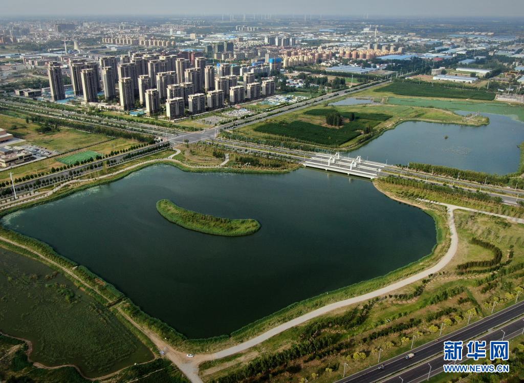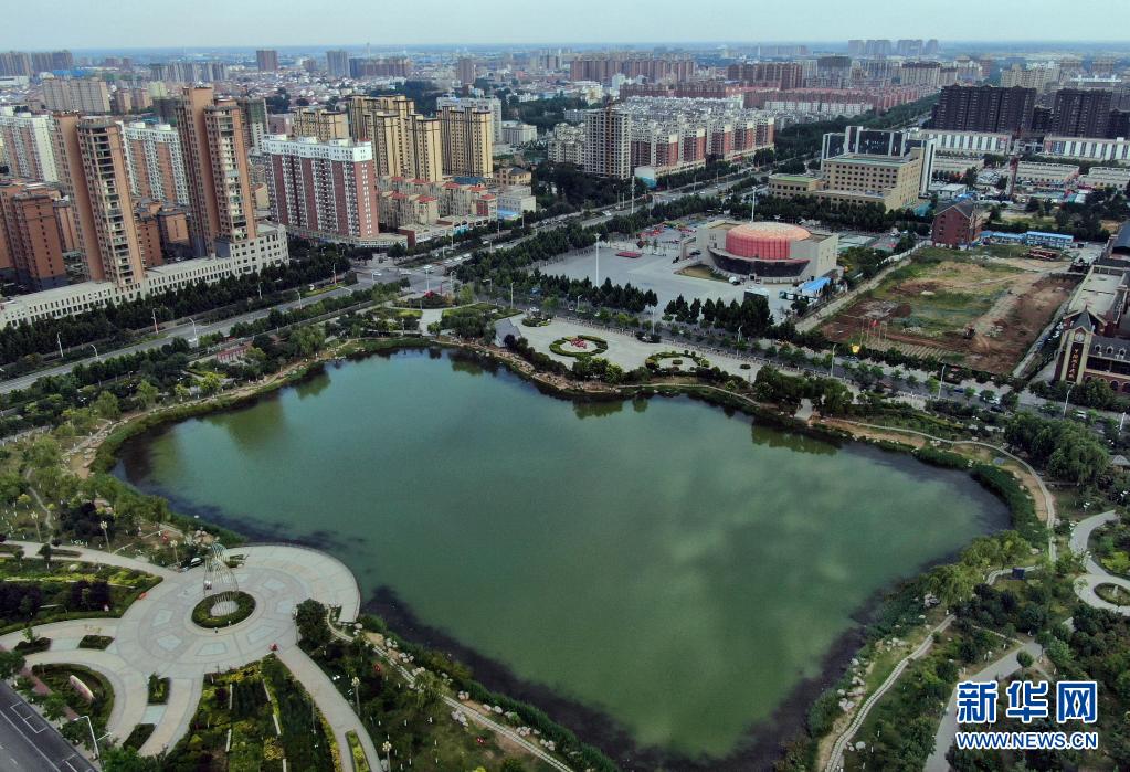 这是6月23日拍摄的兰考县凤鸣湖湿地公园(无人机照片)。