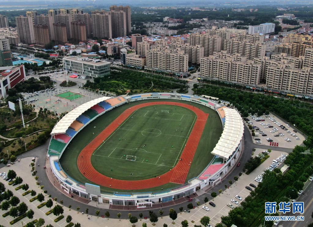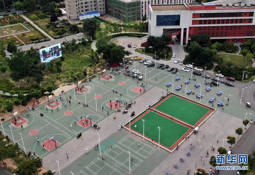 市民在兰考县文体中心运动(6月23日摄,无人机照片)。