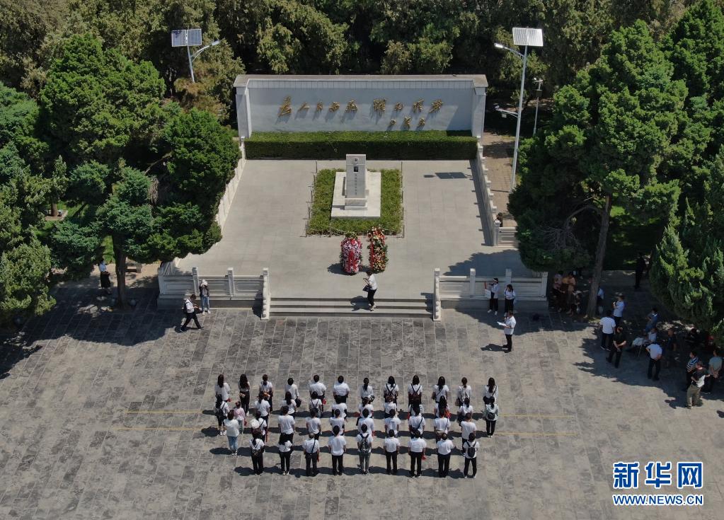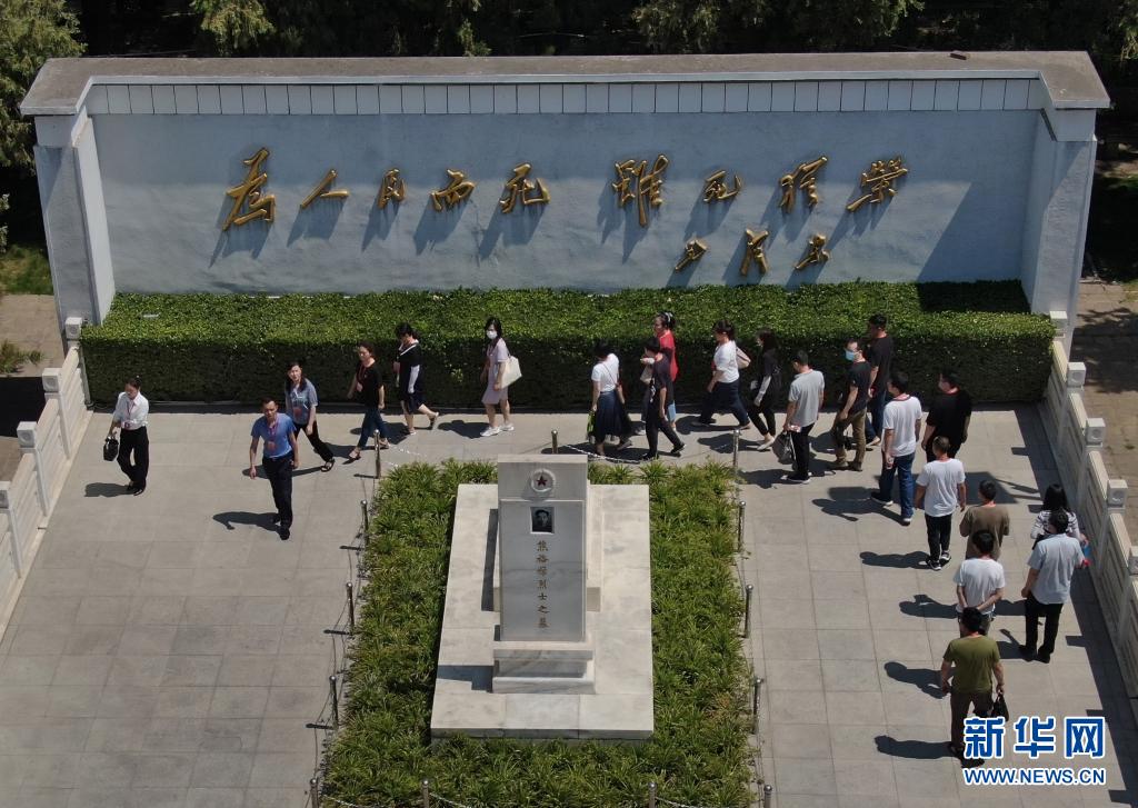 参观者在焦裕禄纪念园瞻仰焦裕禄烈士墓(6月24日摄,无人机照片)。