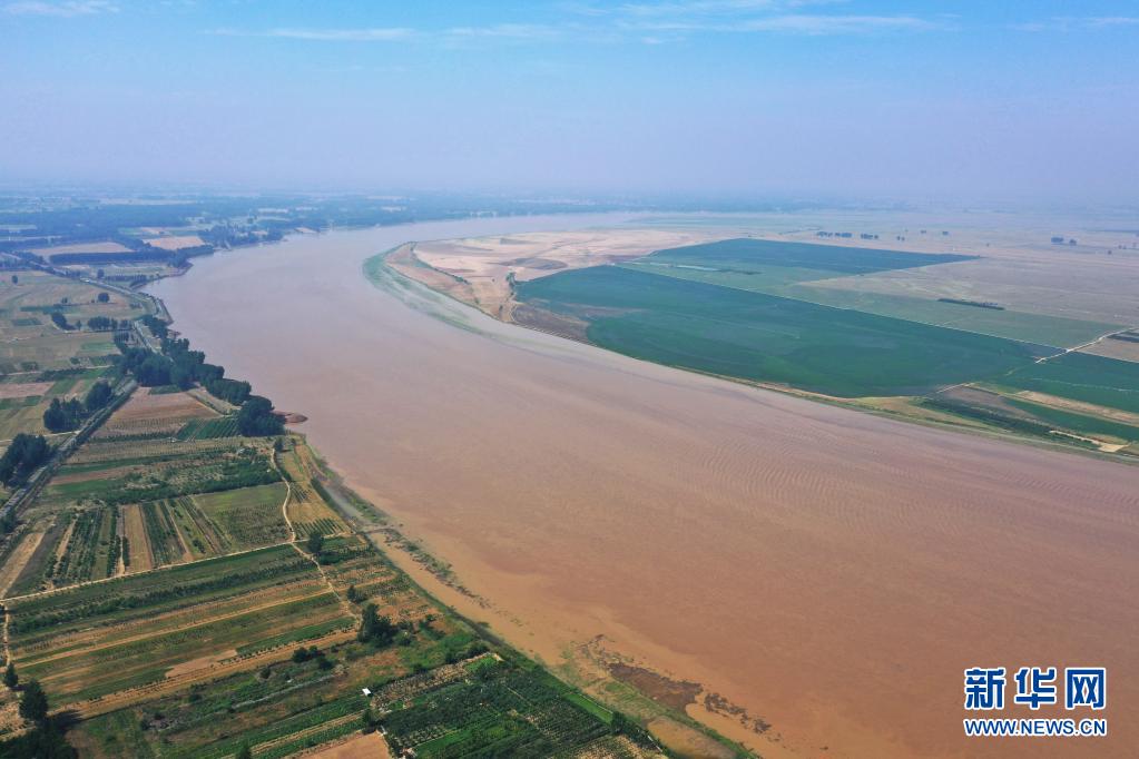这是6月24日在河南省兰考县黄河湾风景区拍摄的黄河(无人机照片)。