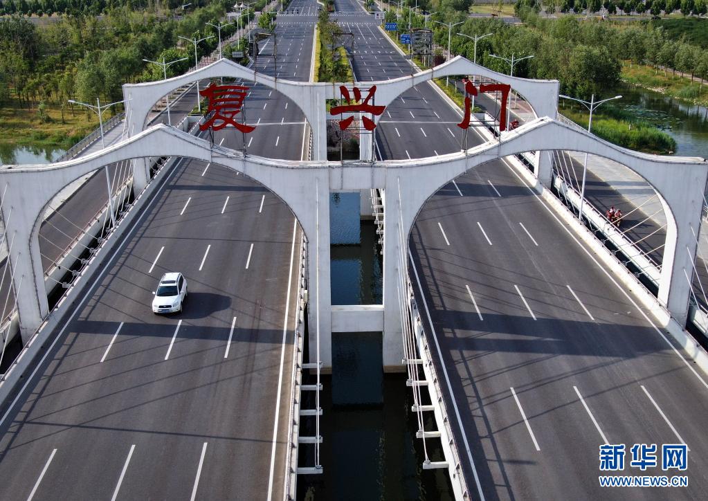 这是6月23日拍摄的贯穿兰考县城南北的济阳大道(无人机照片)。