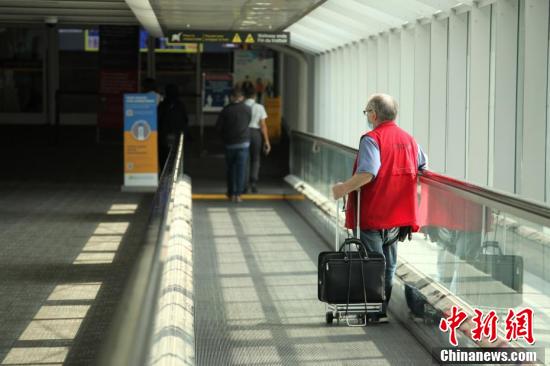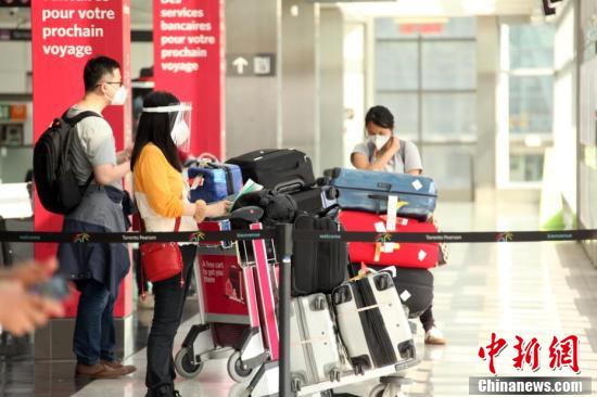 当地时间7月5日,加拿大多伦多皮尔逊国际机场,旅客准备搭乘机场轻轨列车。加拿大从当日起实施放宽入境限令的首阶段措施,入境旅客若已充分接种加官方认可的新冠疫苗,可免于隔离及入境第8天的病毒检测。 中新社记者 余瑞冬 摄