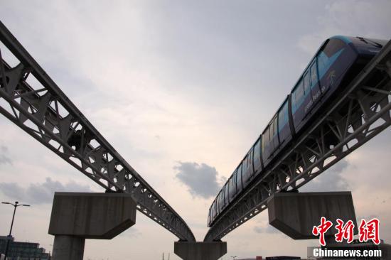 当地时间7月5日,加拿大多伦多皮尔逊国际机场,机场轻轨列车驶离航站楼。加拿大从当日起实施放宽入境限令的首阶段措施,入境旅客若已充分接种加官方认可的新冠疫苗,可免于隔离及入境第8天的病毒检测。 中新社记者 余瑞冬 摄
