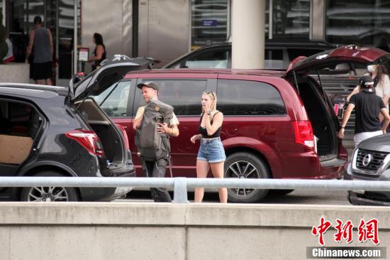 当地时间7月5日,加拿大多伦多皮尔逊国际机场,刚入境的旅客准备乘车离开航站楼。加拿大从当日起实施放宽入境限令的首阶段措施,入境旅客若已充分接种加官方认可的新冠疫苗,可免于隔离及入境第8天的病毒检测。 中新社记者 余瑞冬 摄