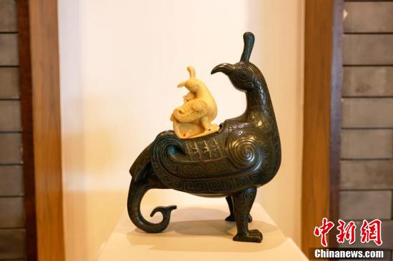 7月6日,山西太原,“鸟尊”雪糕(模型)与青铜器(模型)合影。当日,山西博物院发布“鸟尊”雪糕。 中新社记者 张云 摄